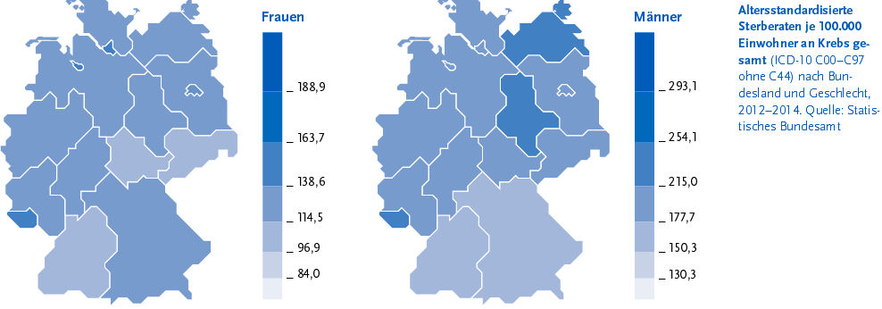 Hohe altersstandardisierte Krebssterberate in Sachsen-Anhalt bei Männern Dagegen sind die Sterberaten bei Frauen in Sachsen und Thüringen niedrig.mehr s. krebsdaten.de 29.11.2016