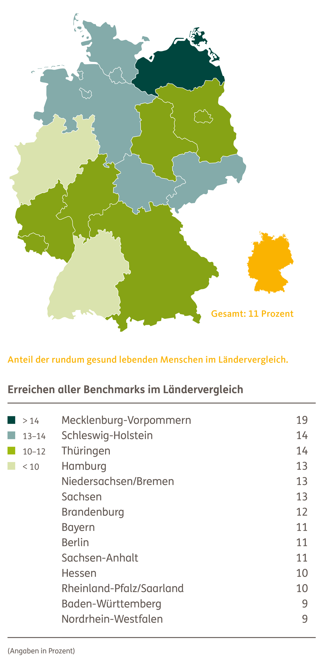 In Sachsen und Thüringen leben überdurchschnittlich viele Menschen rundum gesund